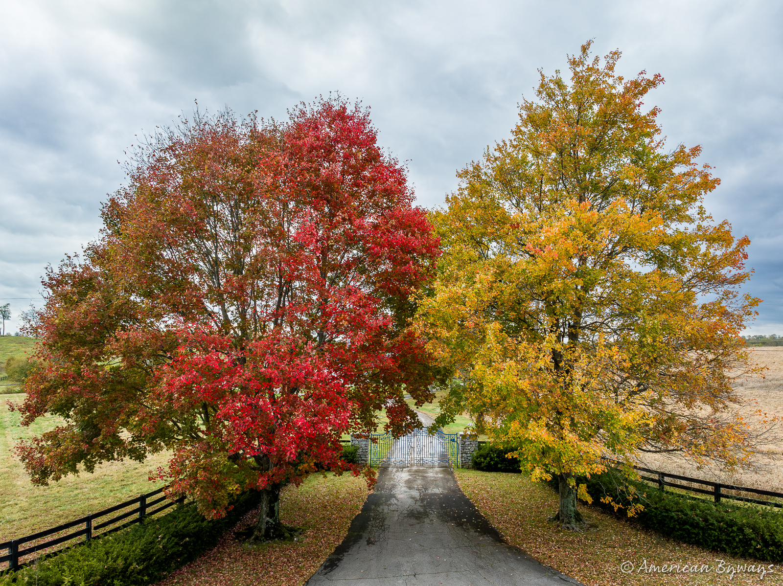 On a balmy autumn afternoon, Adam Paris, a fellow photographer, and I set out to explore the captivating heart of Kentucky’s famed Bluegrass region. As we traversed the undulating hills and picturesque vistas of Fayette, Woodford, and Jessamine Counties, we were constantly enchanted by the lush green horse pastures and the region’s unmistakable Southern charm. Each bend in the road introduced us to a new visual delight, showcasing the enduring beauty and idealistic allure of this rural paradise.